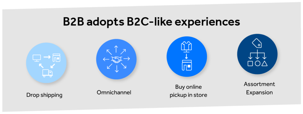 - The trend of B2B companies’ adoption of B2C-like digital experiences will be accelerated by the increasing percentage of the B2B buying workforce shifting to “digitally native” millennial and Gen Z buyers.