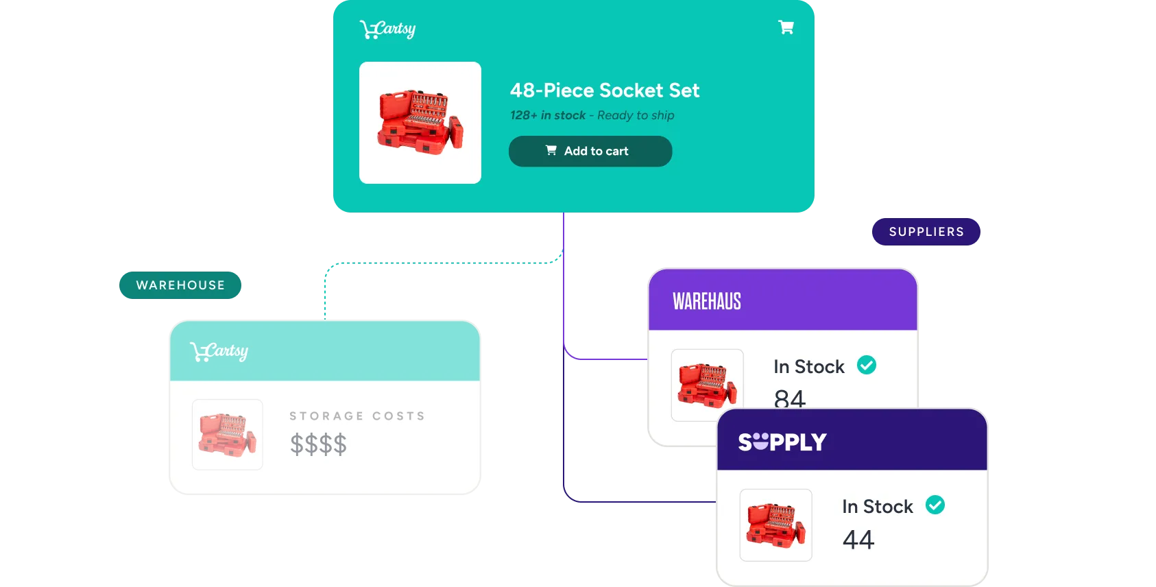 Expand your assortment by selling supplier inventory directly on your site. No warehousing required; no capital tied up in stock.